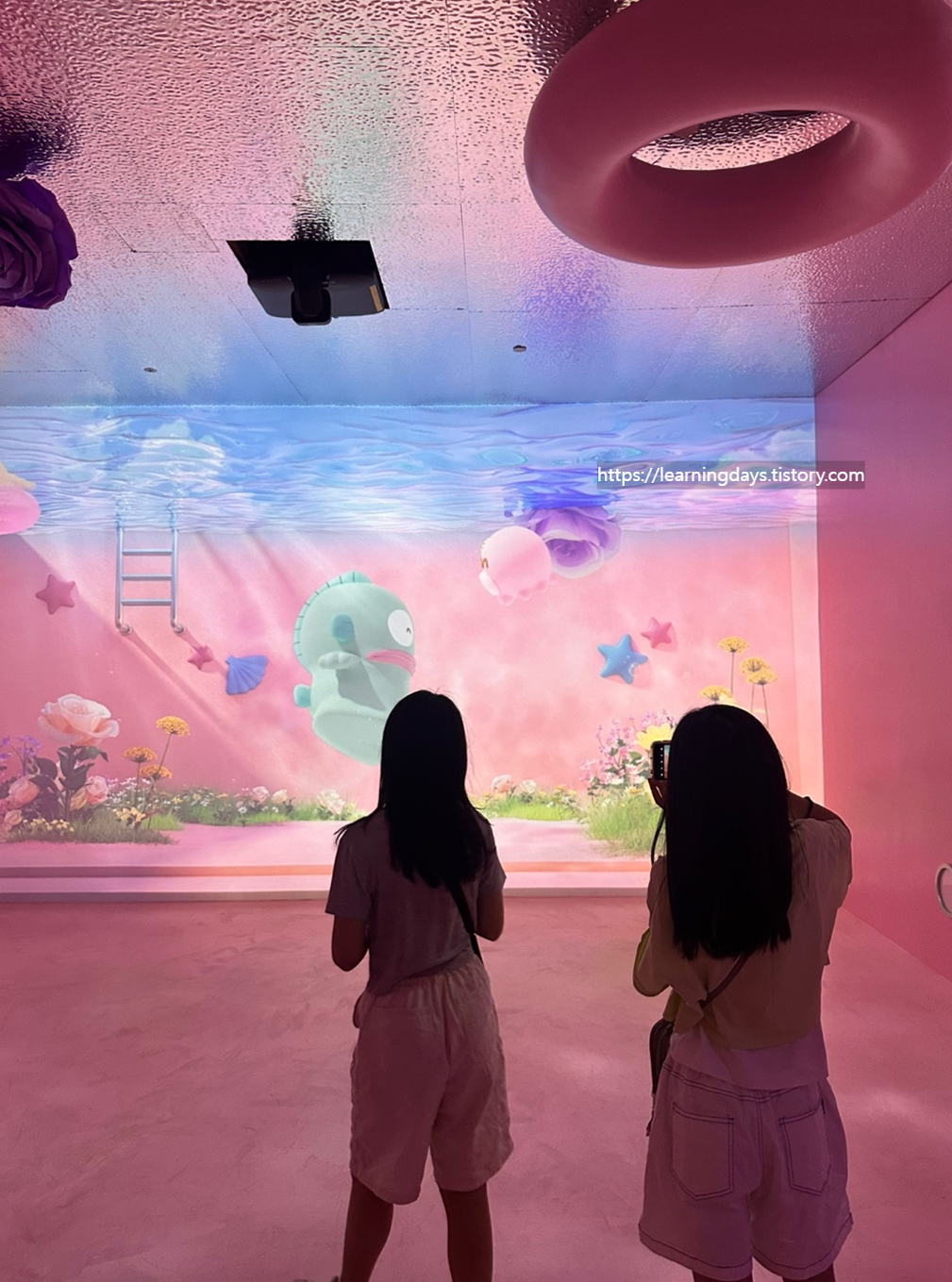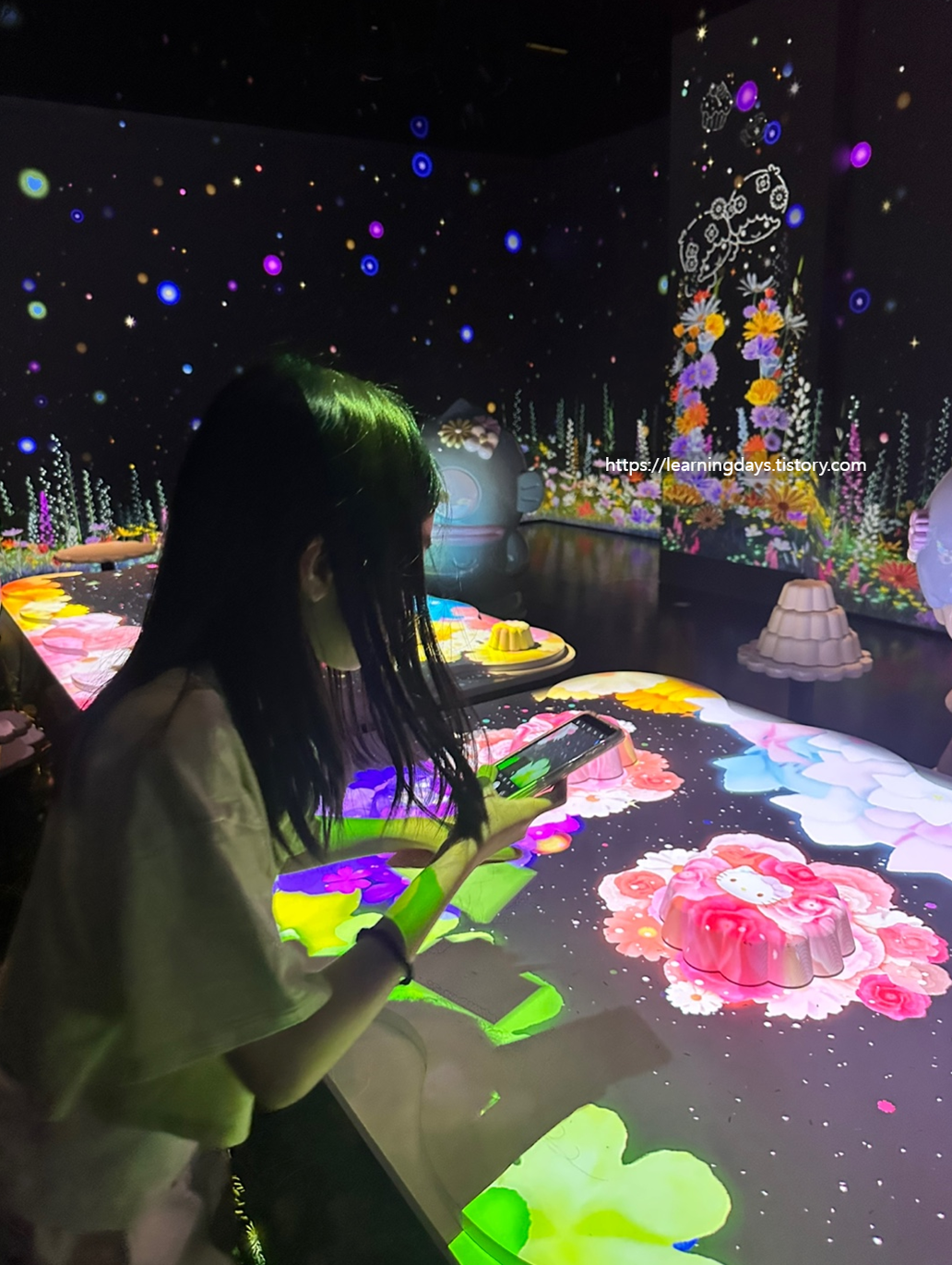 아이들은 “엄마, 진짜 케이크 속에 있는 것 같아!” 하면서 벽을 만져보고, 영상 속 캐릭터와 사진 찍기에 바빴어요.