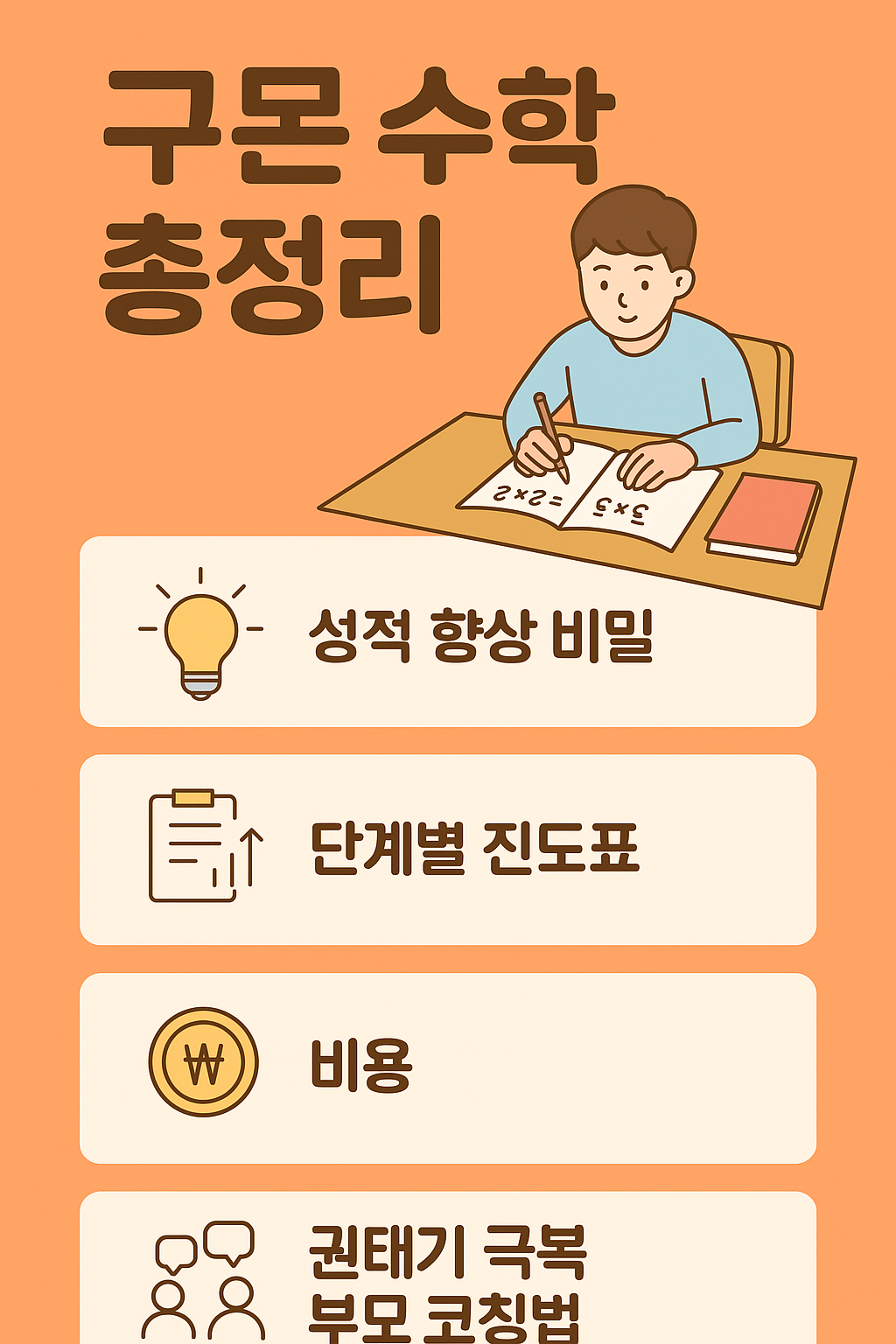오늘은 부모님들이 많이 궁금해하는 구몬 수학의 성적 향상 비결, 단계별 진도표, 비용, 그리고 권태기 극복을 위한 부모 코칭법을 총정리해보겠습니다.